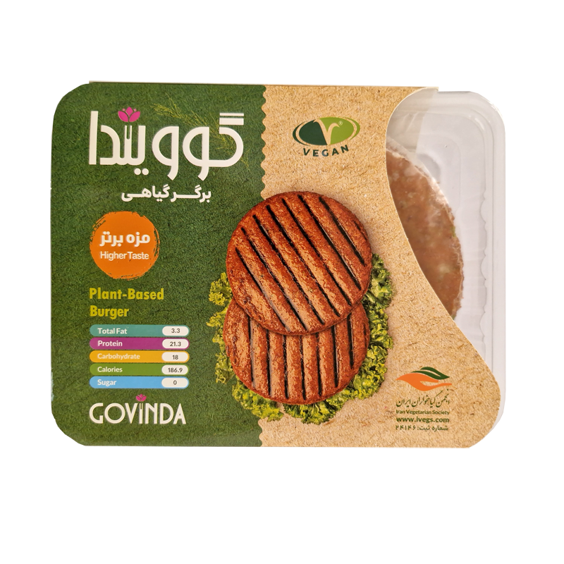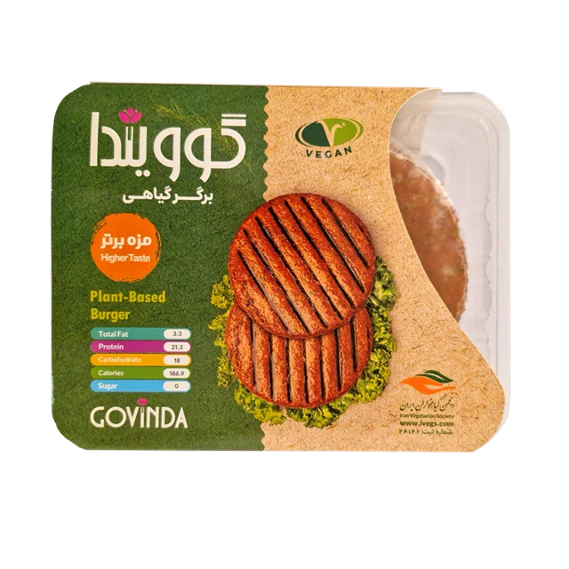 برگر گوویندا یکی ازخوشمزهترین منابع پروتئین وگان هست. این محصول چون سریع آماده میشه انتخاب مناسب برای کسانی است که مشغله زیادی دارن و یا بعضی روزها فرصت درست کردن غذا رو ندارند.
